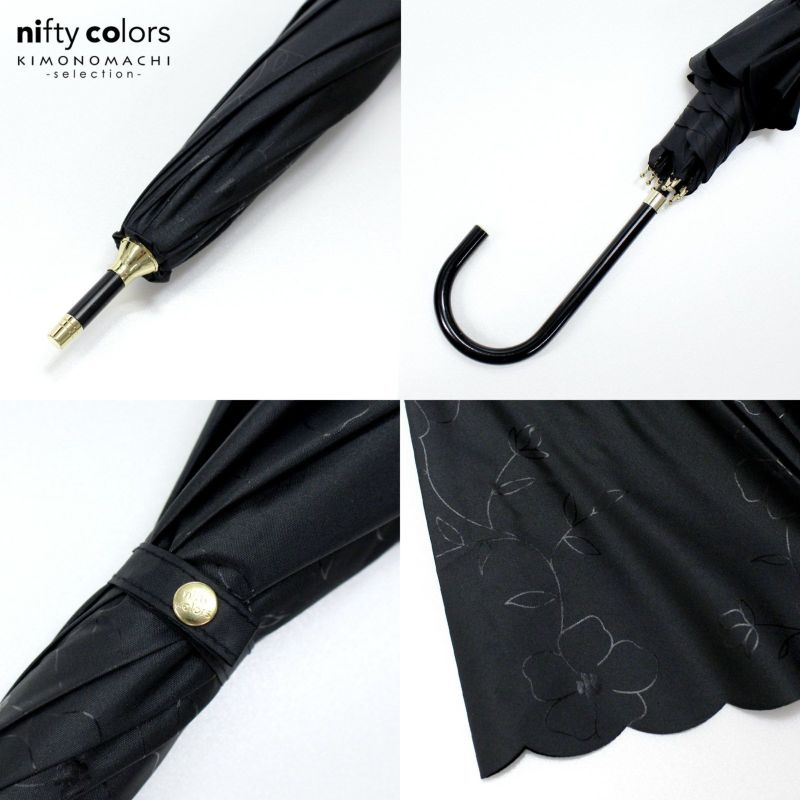 ブラックには透明のプリントで花が目立ちすぎず、さしていると光の加減でキラキラと花が浮かび上がります。
