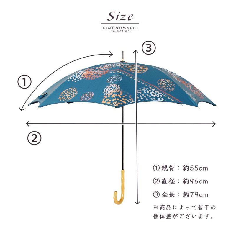 1.あじさい:淡い藤色の地に、紫、青の花、淡い藍白の葉で表現されたアジサイ。藤色の縁取り。黒にゴールドの石突き。ナチュラルカラーの木の持ち手にロゴが入っています。