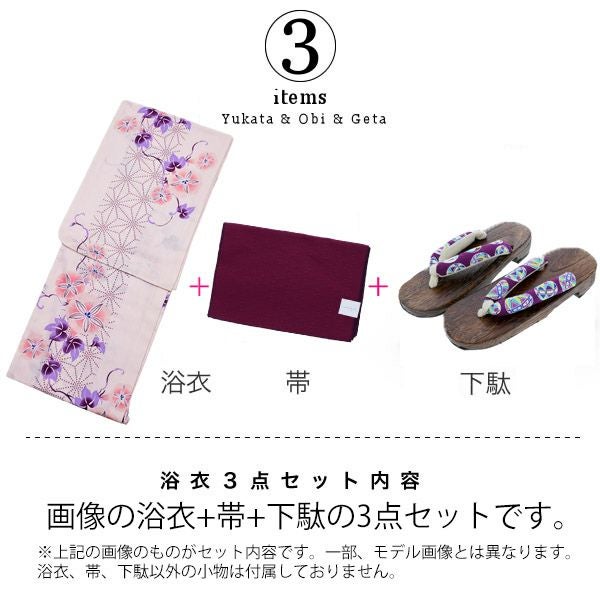 【商品内容】浴衣、浴衣帯、下駄の計3点セット