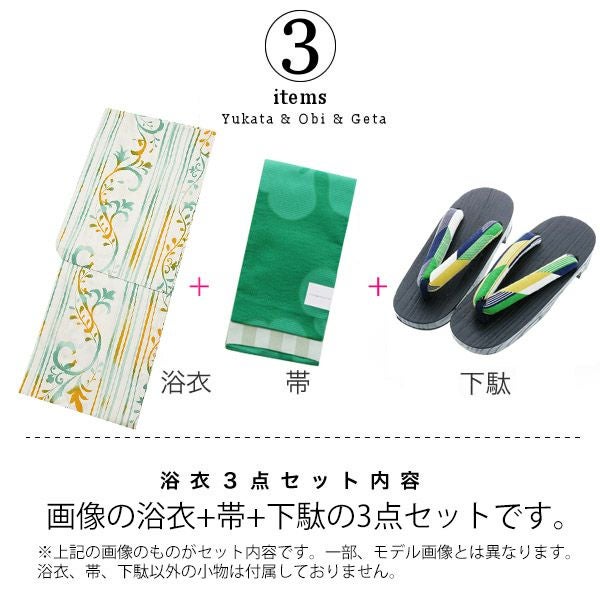 【商品内容】浴衣、浴衣帯、下駄の計3点セット