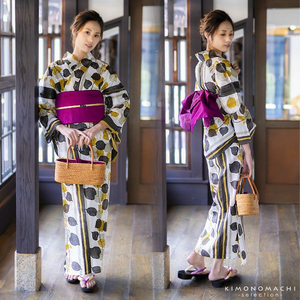 Watuu(和つう)のブランド浴衣、浴衣帯、下駄(F、L~LLの2サイズからサイズをお選びいただけます。)の3点セットです。