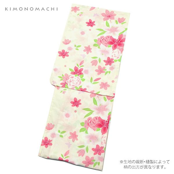 【カラー】柔らかな生成り地に、百合、薔薇などの花。ところどころに小さな蝶模様。