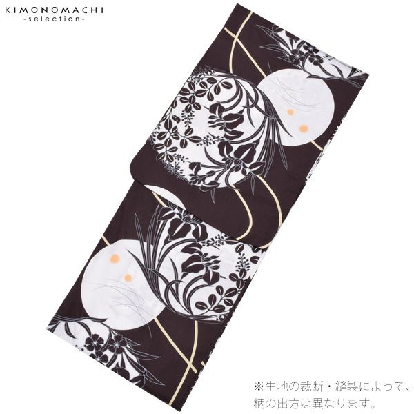 女性浴衣単品「黒茶色 花の丸」綿浴衣 女性浴衣 フリー 綿 お仕立て上がり浴衣 8FS-G-32