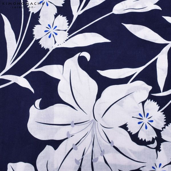 3. 女性浴衣単品「濃紺色 百合と花」綿浴衣 女性浴衣 フリー 綿 お仕立て上がり浴衣 8FS-G-37【メール便不可】ss2206ykl10