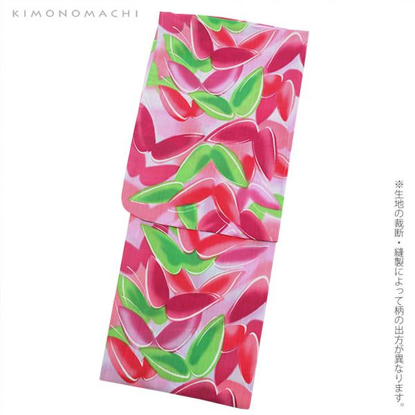 作り帯浴衣セット「ビビッドピンク 蝶々」S、F、TL、LL 2点セット レディース浴衣 お仕立て上がり浴衣 ポリエステル浴衣