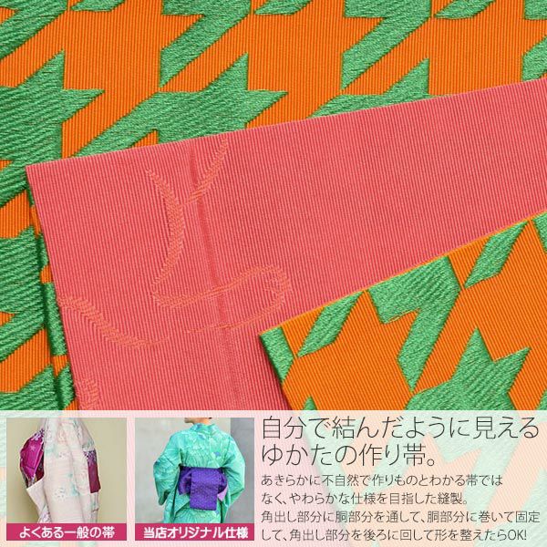 【商品内容】浴衣、帯の計2点(※帯は作り帯です。胴部分、お太鼓風部分の2パーツに分かれています。)
