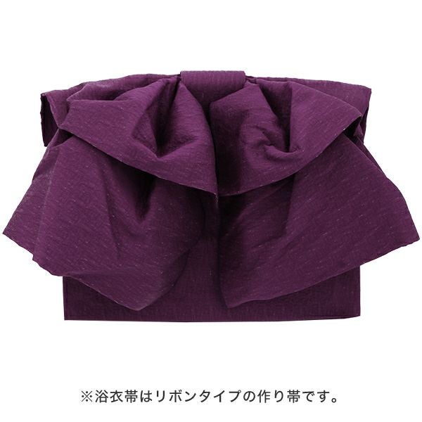 浴衣は、変わり織り生地で高級感があります。帯はリボンタイプの作り帯で、華やかな雰囲気です。