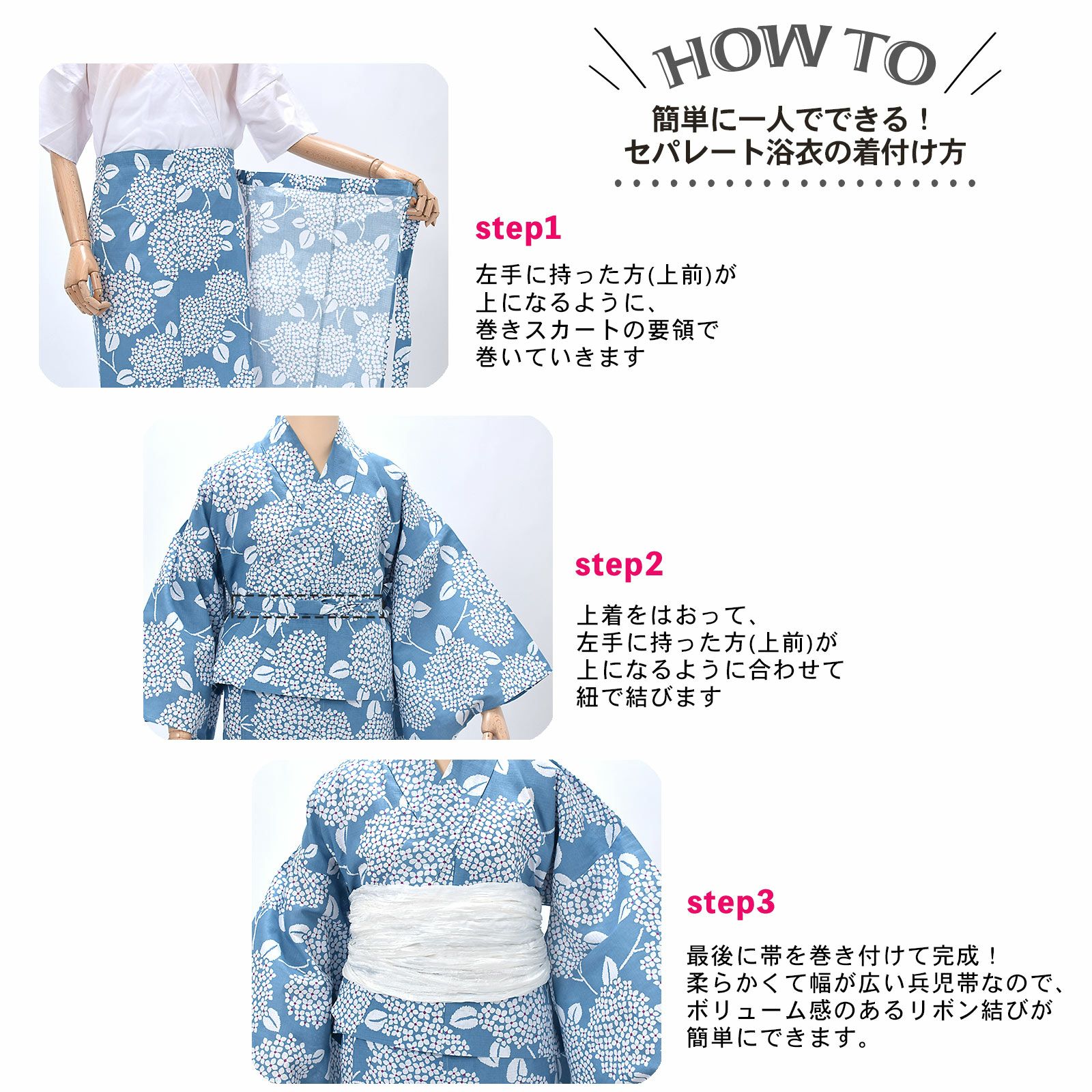他の画像を見る 送料無料 誰でも簡単に着られるセパレート浴衣としわ兵児帯に下駄もセット!すぐにお出かけできる簡単着付け浴衣セット セパレート レディース浴衣 3点セット(二部式浴衣+しわ兵児帯+下駄)「バブルドット・あじさい・ヒマワリ」ゆかた Fサイズ きもの町オリジナル KIMONOMACHI 花火大会 夏祭り【メール便不可】 きもの町価格 ¥ 9,790 税込 カートに入れる お気に入りに登録する