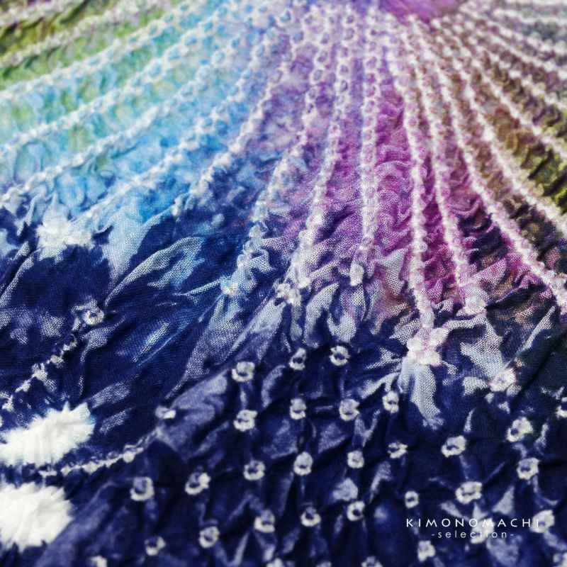 ※ひとつひとつ手作業で職人さんが括り(くくり)や染めなどをほどこし、製作しております。そのため、1点1点、若干ですが、色合い、絞りの大きさが異なります。また、染めのムラ等も絞りのあじとしてご堪能ください。