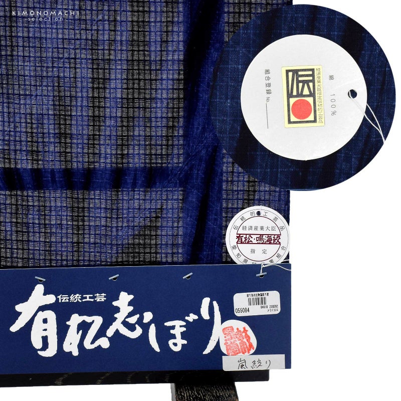 伝統工芸品 有松絞り 絞り浴衣反物「嵐絞り 紺×紺藍」有松・鳴海絞 女性浴衣 レディース浴衣 絞り浴衣 綿浴衣 未仕立て【メール便不可】