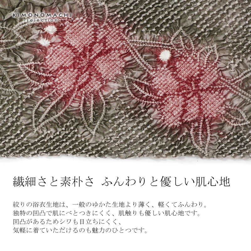 絞りの浴衣生地は、一般のゆかた生地より薄く、軽くてふんわり。