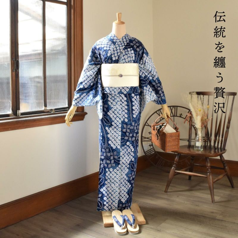 伝統を着る贅沢 長く着られる一生もの浴衣 家で洗えてクリーニングもアイロンも不要 お仕立て上がり絞り浴衣単品 お仕立て上がり絞り浴衣単品「ガールあじさい 紺かけ」有松絞り 女性浴衣単品 レディース浴衣単品 綿 お仕立て上がり浴衣 yukata【メール便不可】