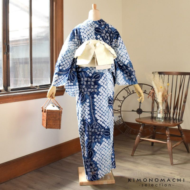 お仕立て上がり絞り浴衣単品「ガールあじさい 紺かけ」有松絞り 女性浴衣単品 レディース浴衣単品 綿 お仕立て上がり浴衣 yukata