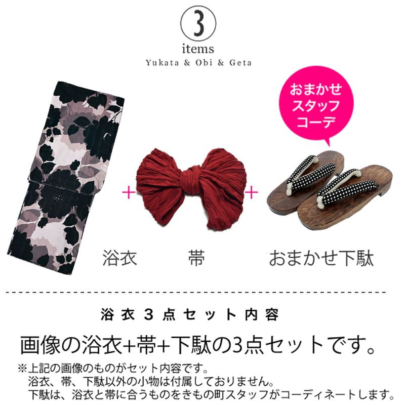 下駄もコーディネートしてお届けします(下駄はおまかせとなります。写真の下駄は一例です)。下駄のサイズはFサイズとなります。