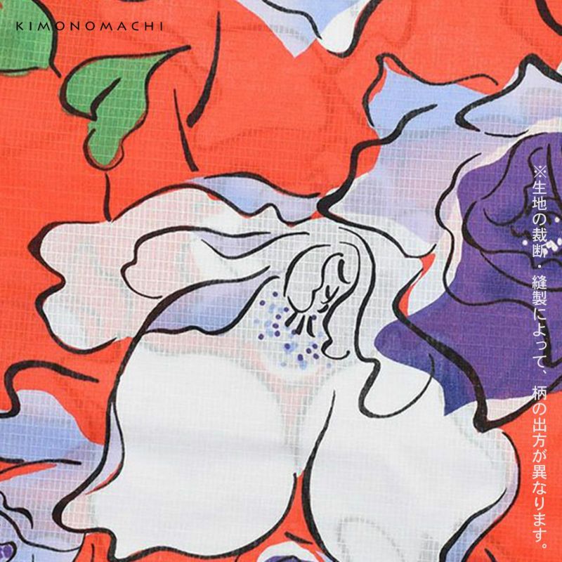 京都きもの町オリジナル浴衣単品「オレンジレッド薔薇」S、フリー、TL、LL 綿浴衣 レディース レトロ 女性浴衣