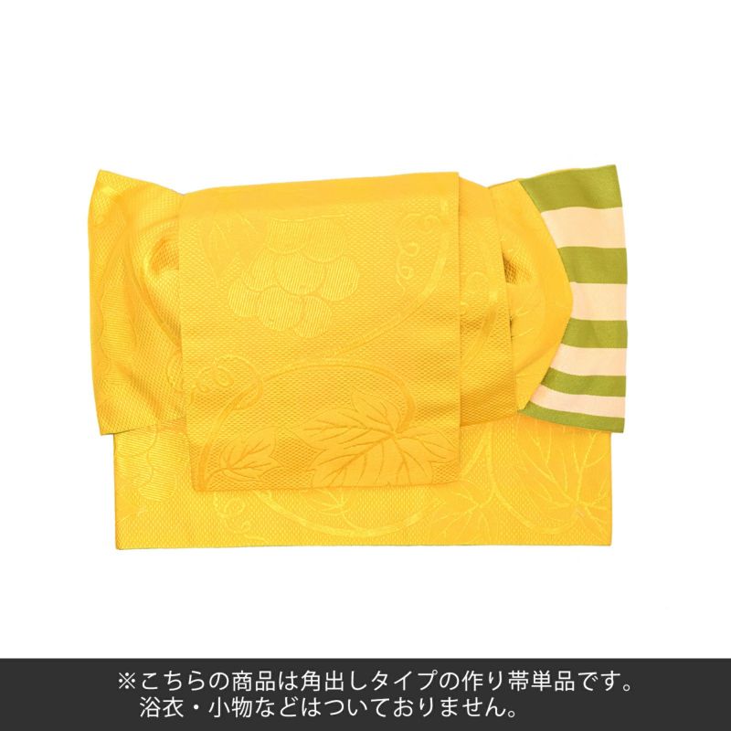 【カラー】表は鮮やかな濃い黄色に葡萄蔦模様。裏は明るいグリーン×薄い黄色の縞模様。