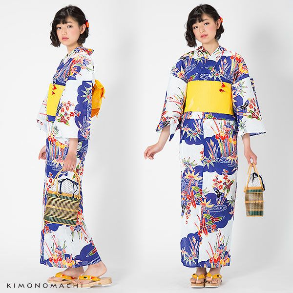 京都きもの町のKIMONOMACHIブランドの浴衣、浴衣帯の2点セットです。モデルのコーデ通りの浴衣と帯の組み合わせでお届けしますので、コーディネートも安心です。夏祭り、盆踊り、花火大会、夏フェスなどの夏のイベントに。是非、この夏、浴衣で楽しんでください。