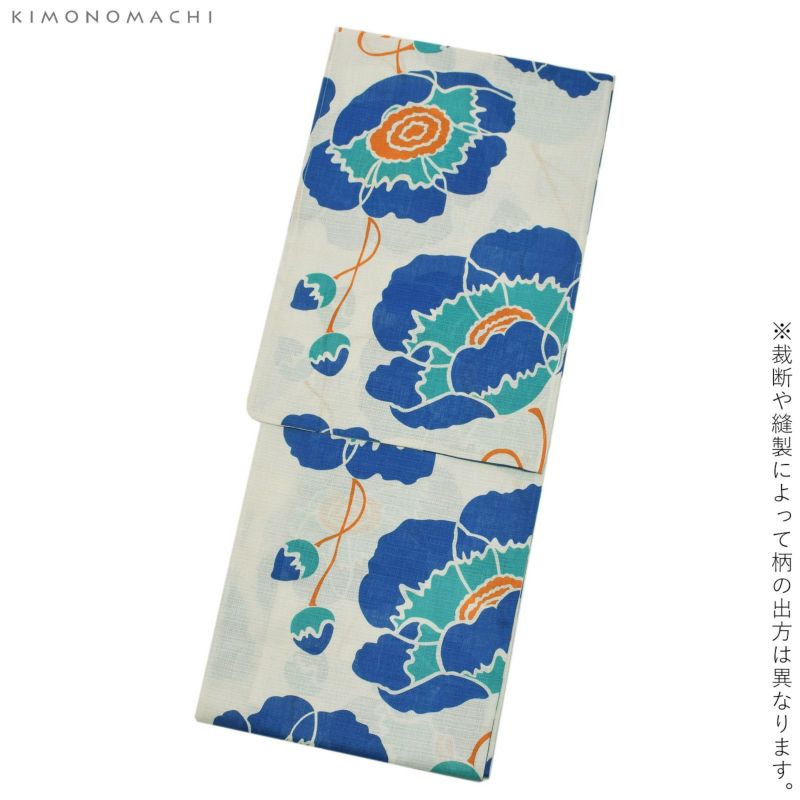 【カラー】生成り地にブルーと水色の大きな花