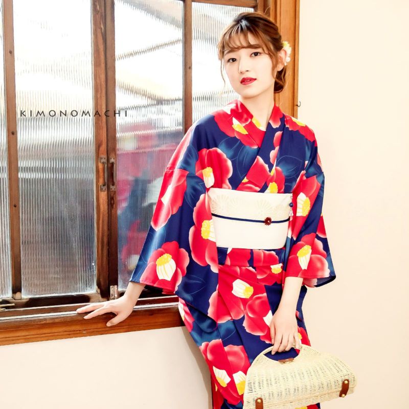 5. 【Prices down2】浴衣 レディース 「ネイビー 水彩椿」 吸水速乾 CoolPass ポリエステル浴衣 ポリ浴衣 大人 個性的 花火大会 夏祭り 女性浴衣 女性ゆかた 夏着物 単衣着物 京都きもの町オリジナル KIMONOMACHI 【メール便不可】ss2506ykl10