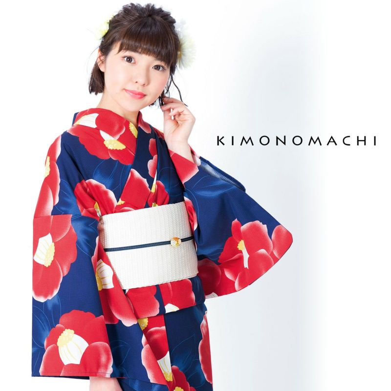 KIMONOMACHI オリジナル 吸水速乾ポリエステル浴衣 【Prices down2】浴衣 レディース 「ネイビー 水彩椿」 吸水速乾 CoolPass ポリエステル浴衣 ポリ浴衣 大人 個性的 花火大会 夏祭り 女性浴衣 女性ゆかた 夏着物 単衣着物 京都きもの町オリジナル KIMONOMACHI 【メール便不可】ss2506ykl10