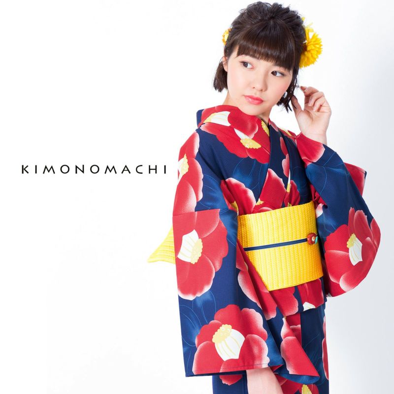 3. 【Prices down2】浴衣 レディース 「ネイビー 水彩椿」 吸水速乾 CoolPass ポリエステル浴衣 ポリ浴衣 大人 個性的 花火大会 夏祭り 女性浴衣 女性ゆかた 夏着物 単衣着物 京都きもの町オリジナル KIMONOMACHI 【メール便不可】ss2506ykl10