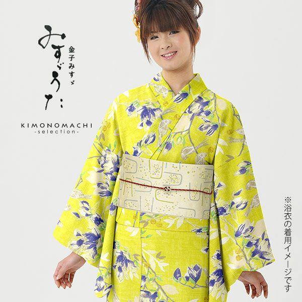【Prices down2】みすゞうた浴衣単品「黄色 小鳥と鈴と」ブランド浴衣単品 女性浴衣単品 金子みすゞ 大人浴衣単品 浴衣単品 M1805【メール便不可】ss2506ykl10