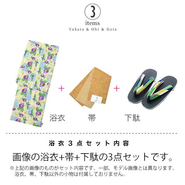 【商品内容】浴衣、浴衣帯、下駄の計3点セット