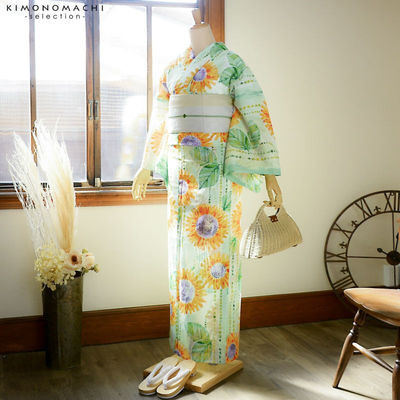 5. 浴衣 レディース ブランド浴衣 単品「みすゞうた 向日葵 黄色 M 2501」Fサイズ 大人 綿絽浴衣 女性浴衣単品 レディース浴衣単品 個性的 花火大会 夏祭り 女性浴衣 女性ゆかた 夏着物<H>【メール便不可】