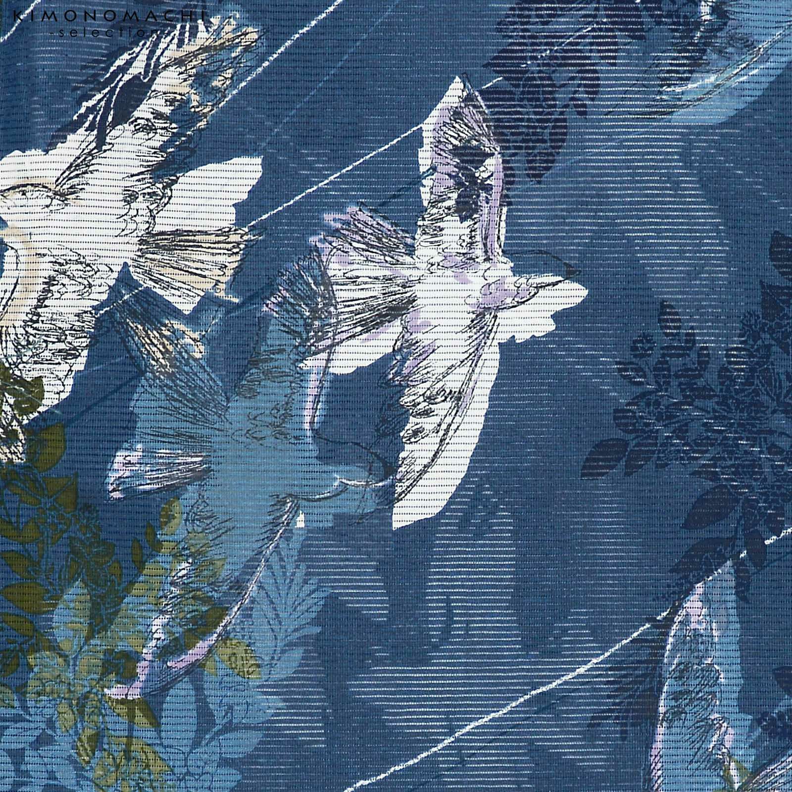 浴衣 レディース ブランド浴衣 単品「みすゞうた 花と鳥 紺鼠色 M 2506」Fサイズ 大人 綿絽浴衣 女性浴衣単品 レディース浴衣単品 個性的 花火大会 夏祭り 女性浴衣 女性ゆかた 夏着物<H>【メール便不可】