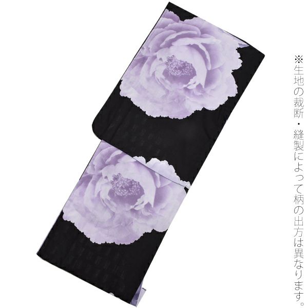 3. ボヌールセゾン浴衣4点セット「ブラック 牡丹」綿浴衣 三分紐、帯留めの帯飾り付き bonheur saisons お仕立て上がり浴衣 変わり織り 【メール便不可】