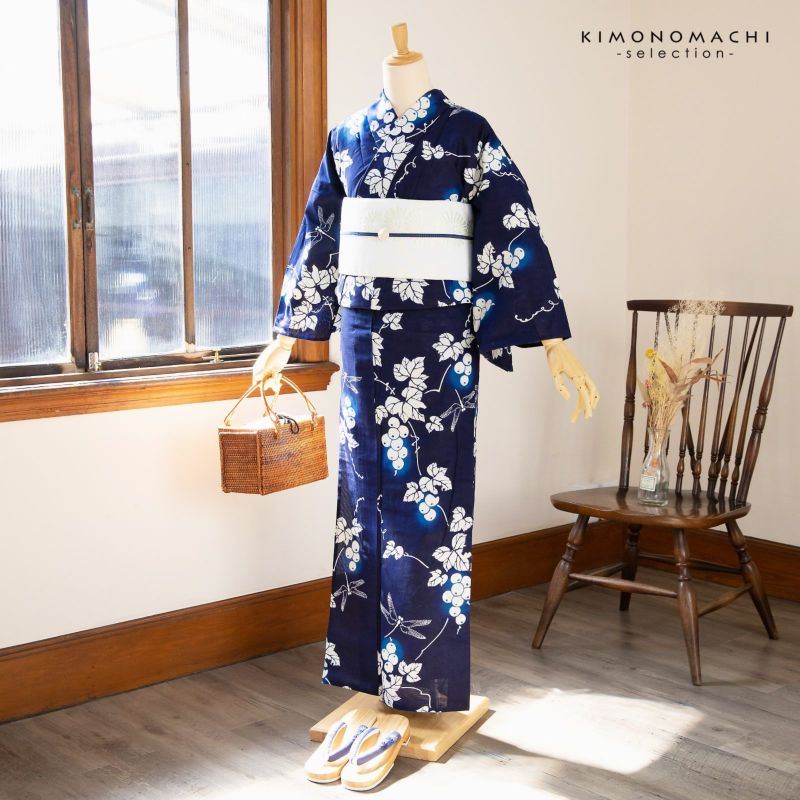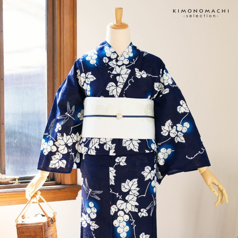 3. 【Prices down2】浴衣 レディース 単品 お仕立て上がり浴衣 プレタ 「紺地 野葡萄に蜻蛉」 和布流 Fサイズ シック 大人 モダン 粋 古典 ゆかた 女性 ブランド ブランド浴衣 花火大会 夏祭り 綿 絽 夏着物にも 【メール便不可】<H>ss2506ykl10