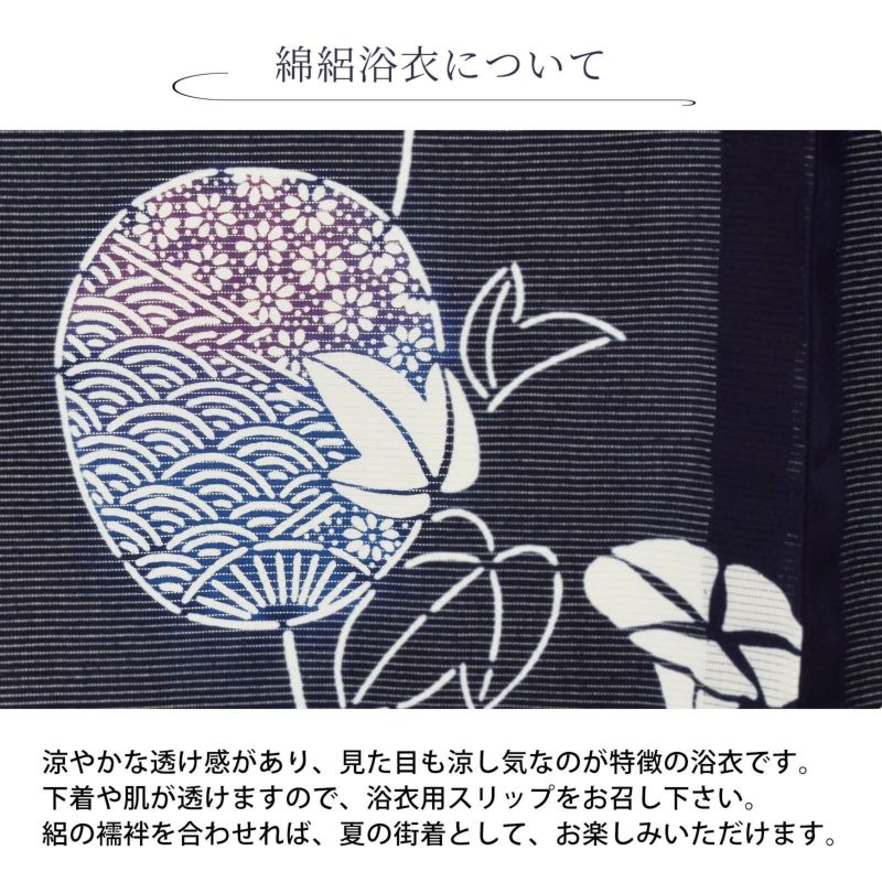 ※浴衣には透け感がございます。浴衣の下には浴衣スリップなど浴衣用肌着のご着用をおすすめいたします。