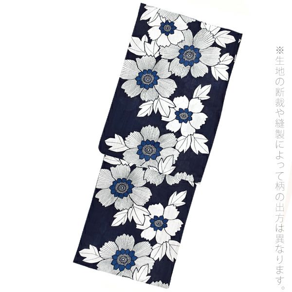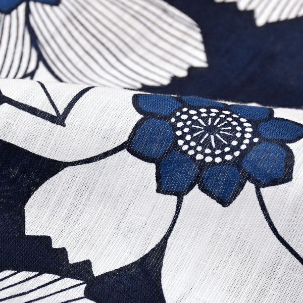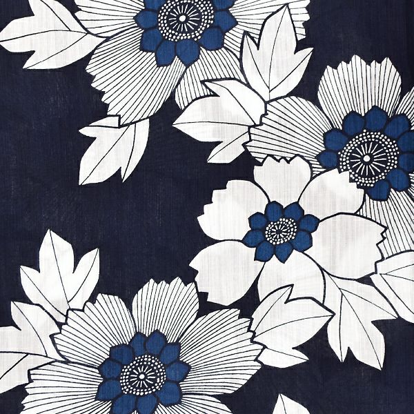 【色柄】深い紺地に白く染め抜かれた花、花の中心は少し明るい紺色の花びら