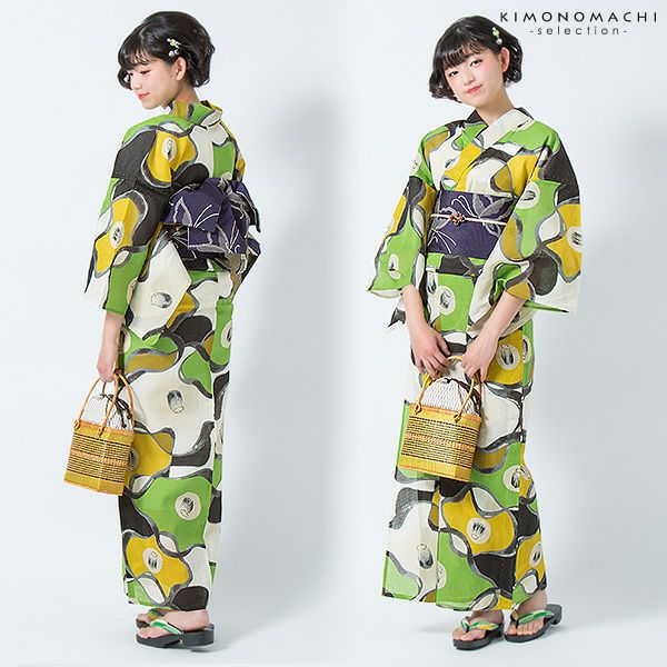 3. 【Prices down2】芸艸堂浴衣単品「緑×からし 椿」桂友同机会 綿浴衣 日本製 UNSODO 綿紅梅 【メール便不可】ss2512ykl45