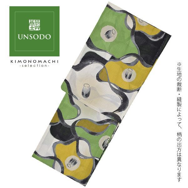芸艸堂浴衣単品「緑×からし 椿」桂友同机会 綿浴衣 日本製 UNSODO 綿紅梅