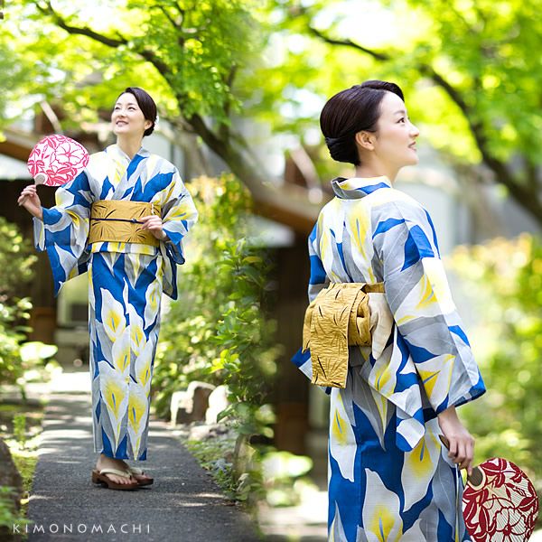 京都きもの町オリジナル浴衣、浴衣帯の2点セットです。夏祭り、盆踊り、花火大会、夏フェスなどの夏のイベントに。変わり織り生地の浴衣です。