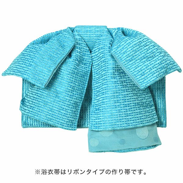 浴衣は、変わり織り生地で高級感があります。帯はリボンタイプの作り帯で、華やかな雰囲気です。