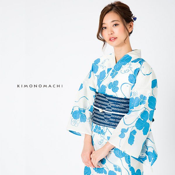 京都きもの町のKIMONOMACHIブランドの浴衣、浴衣帯の2点セットです。モデルのコーデ通りの浴衣と帯の組み合わせでお届けしますので、コーディネートも安心です。夏祭り、盆踊り、花火大会、夏フェスなどの夏のイベントに。是非、この夏、浴衣で楽しんでください。
