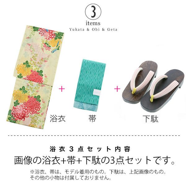 京都きもの町オリジナル浴衣福袋の浴衣、浴衣帯に下駄がついた浴衣3点セットです。