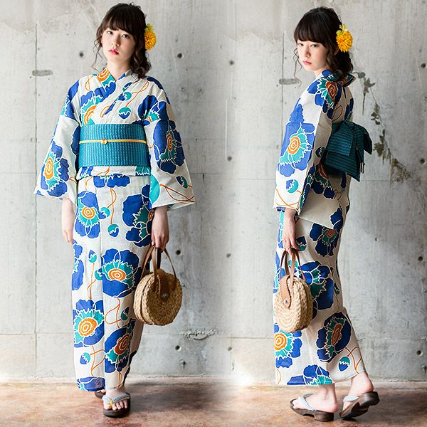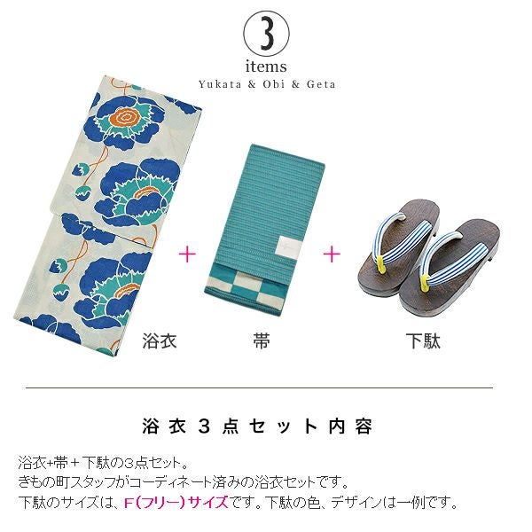 浴衣と帯と下駄がセットになったコーディネート済みレディース浴衣セットです。