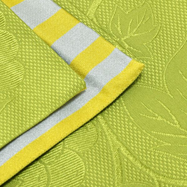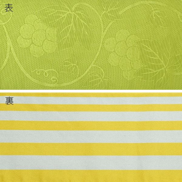 【カラー】表はわずかにくすんだ濃い黄緑色に葡萄蔦模様。裏はグレーみを帯びた黄色×薄グレーの縞模様。