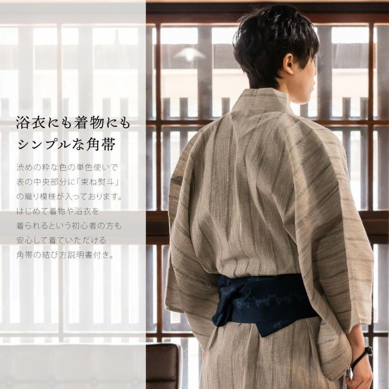 角帯 男性用角帯単品「束ね熨斗 / 紺色・鼠色・赤紫色・金茶色・白鼠色 全5色」日本製 ポリエステル 小袋帯 メンズ 男性用 紳士帯 浴衣帯 KIMONOMACHI 京都きもの町オリジナル【メール便不可】