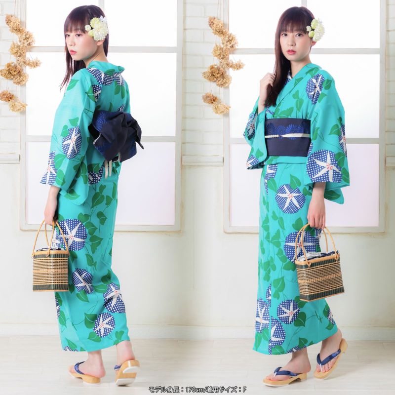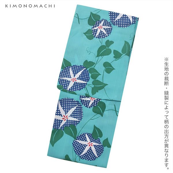 7. 【Prices down2】京都きもの町オリジナル浴衣単品「グリーン×ブルー 朝顔」S、フリー、TL、LL ポリエステル浴衣 お仕立て上がり浴衣 レディース 女性浴衣 【メール便不可】ss2512ykl60
