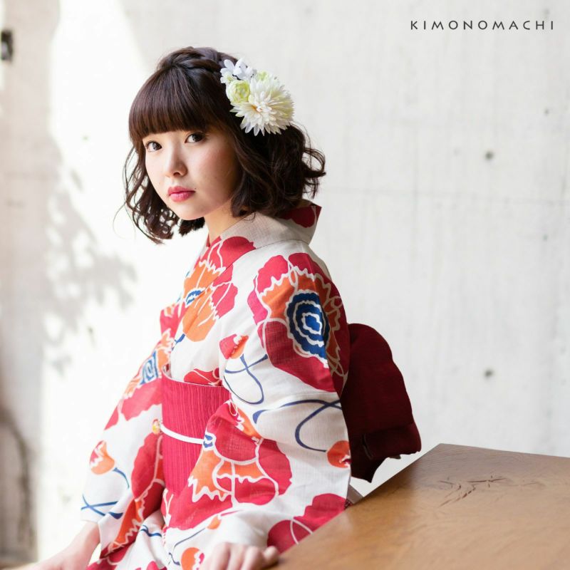涼やかな肌ざわりと透け感の変わり紅梅生地の女性用浴衣です。