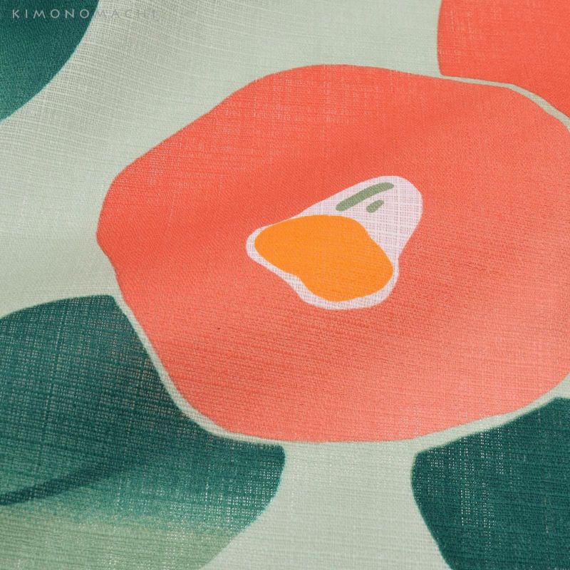 【色柄】パステルグリーン地にピンクの大きな丸椿