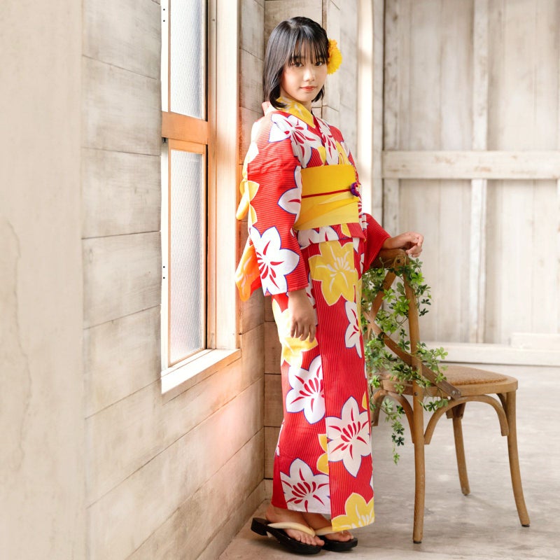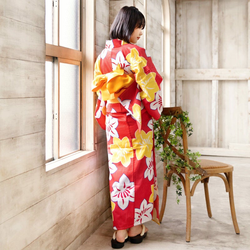 5. 京都きもの町オリジナル浴衣単品「赤色 鉄線」S、フリー、TL、LL 女性浴衣 花火大会、夏祭り、夏フェスに お仕立て上がり浴衣 浴衣 【メール便不可】ss2506ykl10