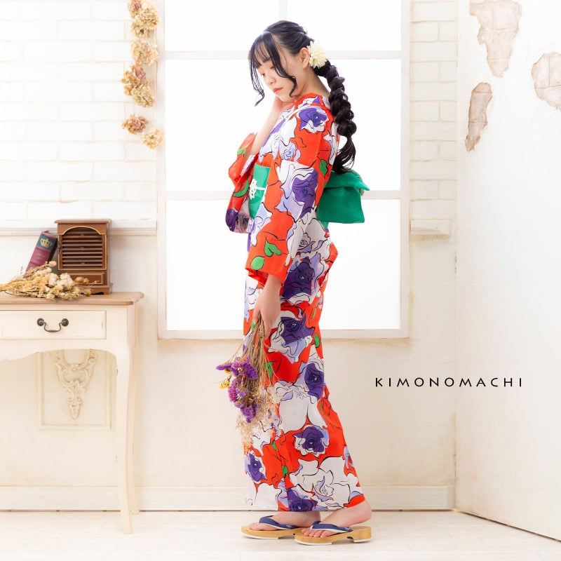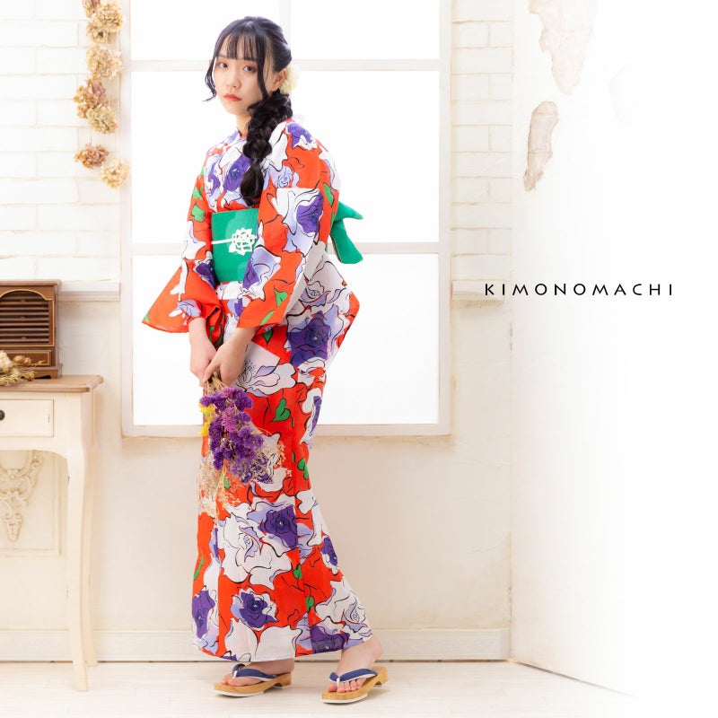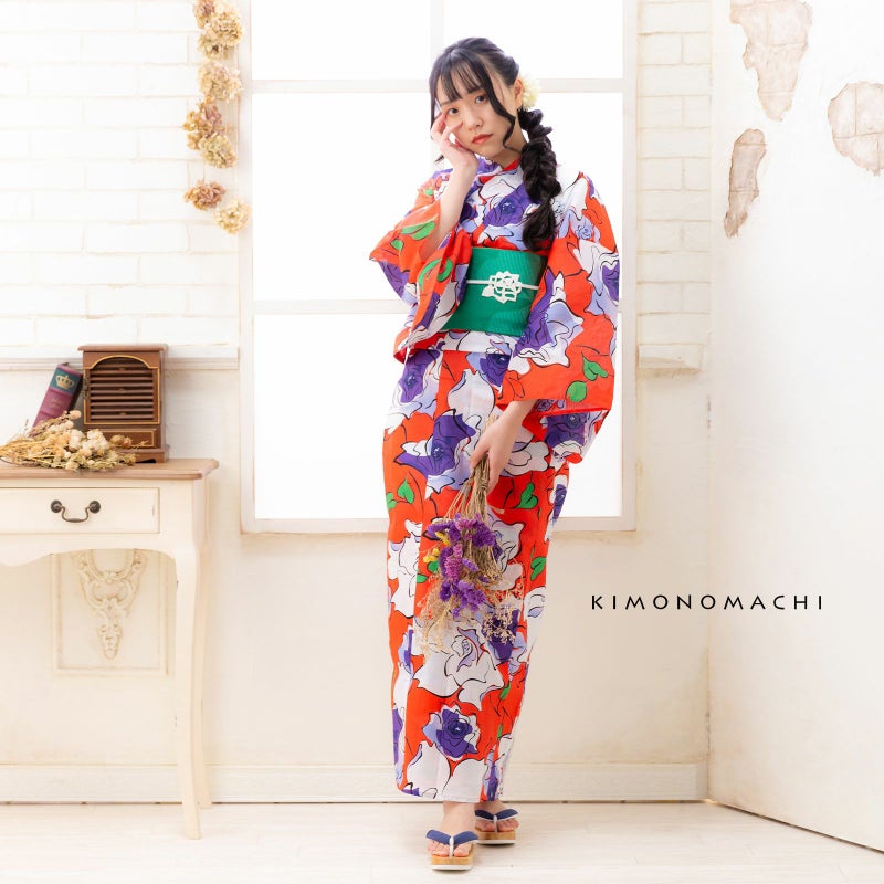 5. 【Prices down2】京都きもの町オリジナル浴衣単品「オレンジレッド薔薇」S、フリー、TL、LL 綿浴衣 レディース レトロ 女性浴衣 【メール便不可】ss2506ykl10