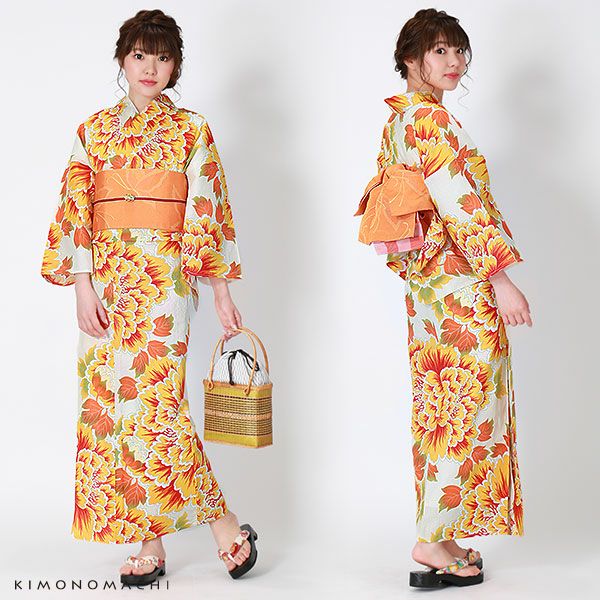 3. 【Prices down2】【50%OFF】京都きもの町オリジナル浴衣単品「オレンジイエロー 大牡丹」S、フリー、TL、LL 女性浴衣 花火大会、夏祭り、夏フェスに お仕立て上がり浴衣 浴衣 【メール便不可】ss2506ykl10