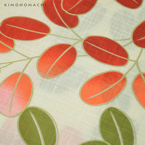 京都きもの町オリジナル浴衣単品「赤×緑 萩」S、フリー、TL、LL 綿浴衣 お仕立て上がり浴衣 レディース 女性浴衣