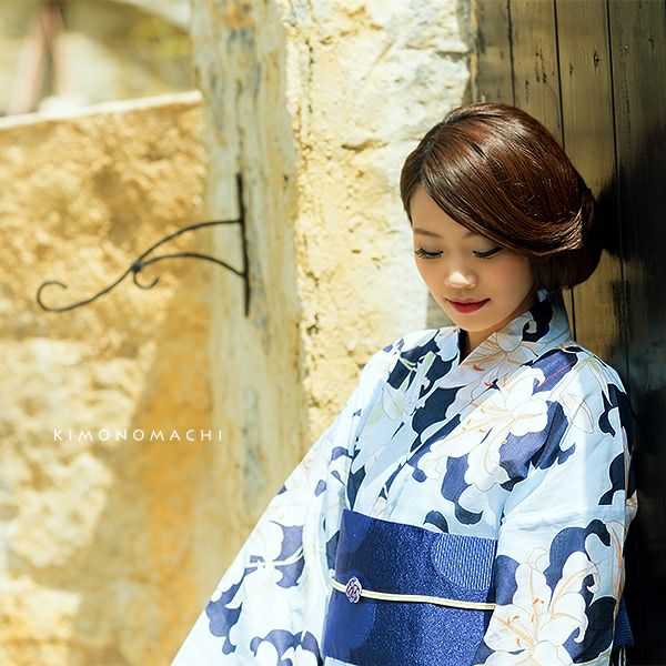 7. 【Prices down2】京都きもの町オリジナル浴衣単品「ブルー 百合」S、フリー、TL、LL 綿浴衣 お仕立て上がり浴衣 レディース 女性浴衣 【メール便不可】ss2506ykl10